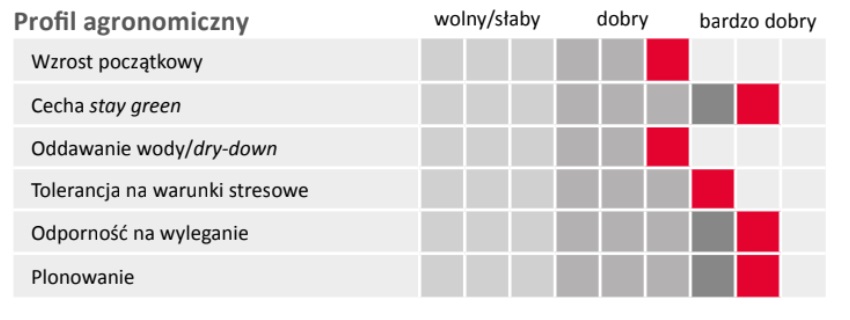 - Bardzo dobry profil zdrowotnościowy, zwłaszcza odporność w kierunku głowni pylącej kukurydzy