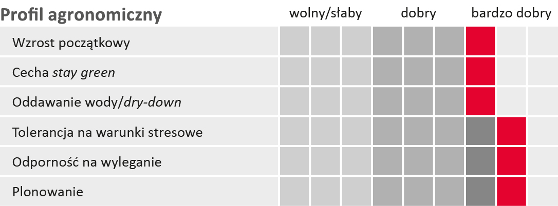 - Bardzo dobry profil agronomiczny – odporność na wyleganie i odporność na choroby