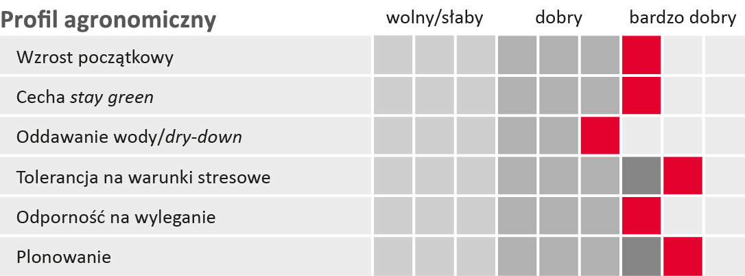 - Bardzo wysoki plon ziarna w użytkowaniu ziarnowym