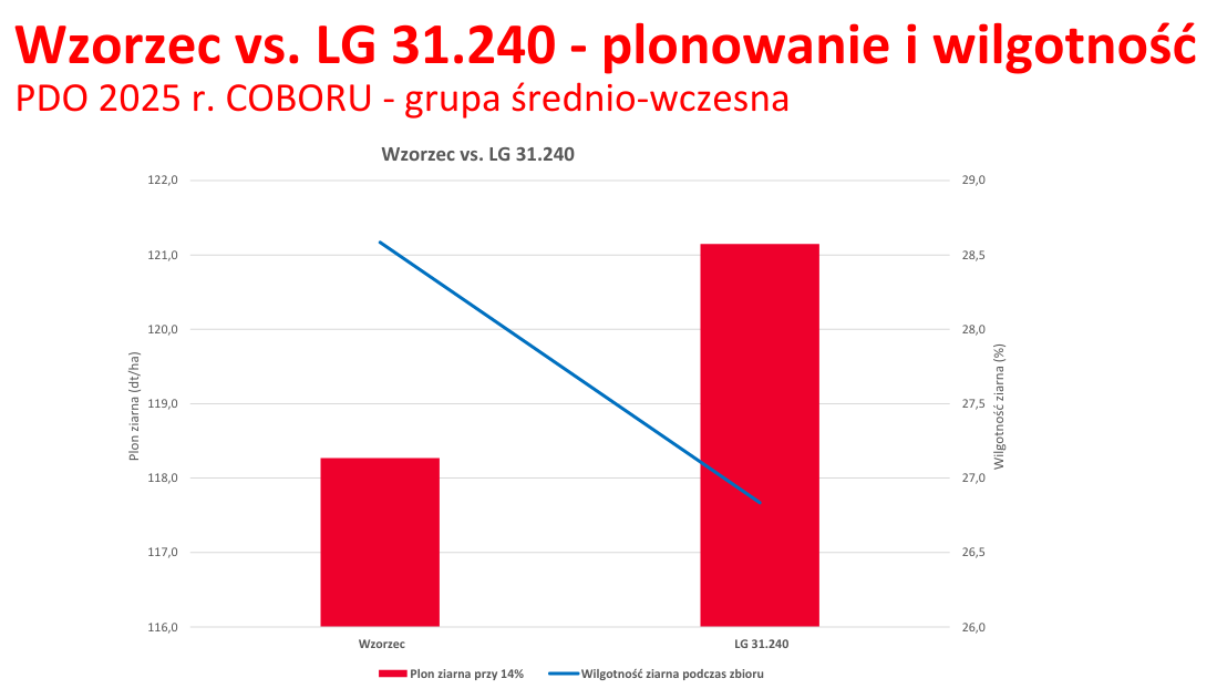 Odmiana kukurydzy LG 31.240 ma bardzo wysoki potencjał plonowania, co jest kluczowym czynnikiem przy uprawie na ziarno. Bardzo dobry wczesny wigor sprawia, że odmiana jest przydatna do wczesnego zbioru. Kukurydza LG 31.240 jest w technologii Hydraneo, która podnosi tolerancję na okresowe niedobory wody.