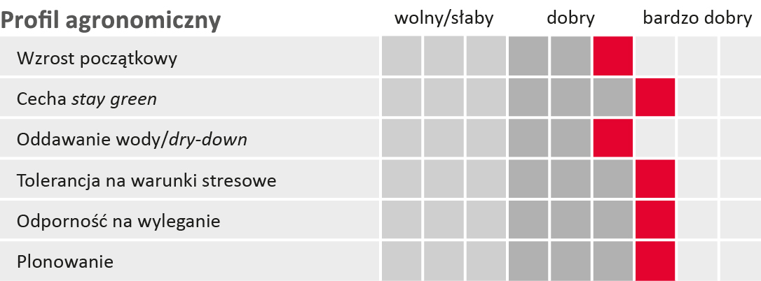 LG 31.280 charakteryzuje się bardzo wysokim plonem zarówno świeżej, jak i suchej masy. Świadczy o tym dotakowo wysokie FAO kukurydzy.