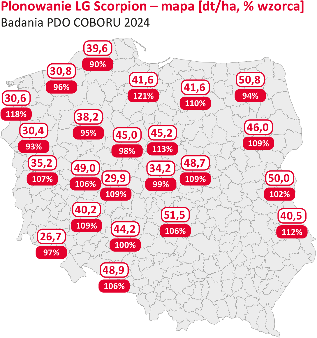 - Nasiona rzepaku ozimego odmiany LG SCORPION jest sprawdzona w stresowych warunkach uprawowych i rekomendowana do uprawy na terenie całego kraju w miejscach, gdzie występują problemy z kiłą kapusty w rzepaku.
