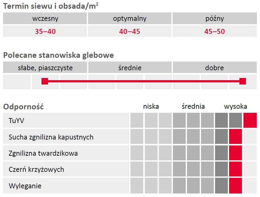 - Unikalny pakiet odpornościowy zabezpiecza plon w trudnych warunkach uprawy.