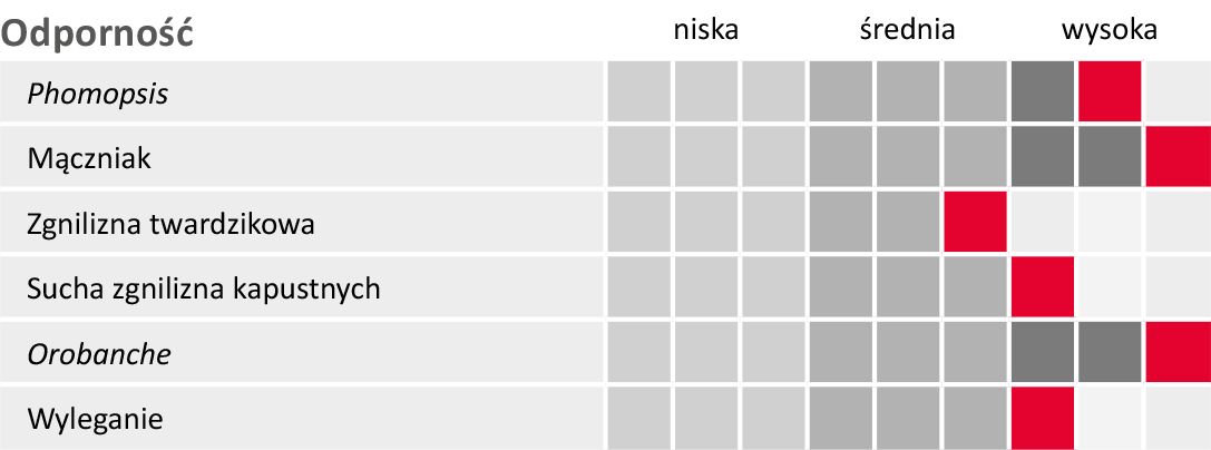 - Technologia: SUNEO najlepsza dostępna genetyka + genetyczna odporność na Orobanche Cumana + Clearfield® Plus*